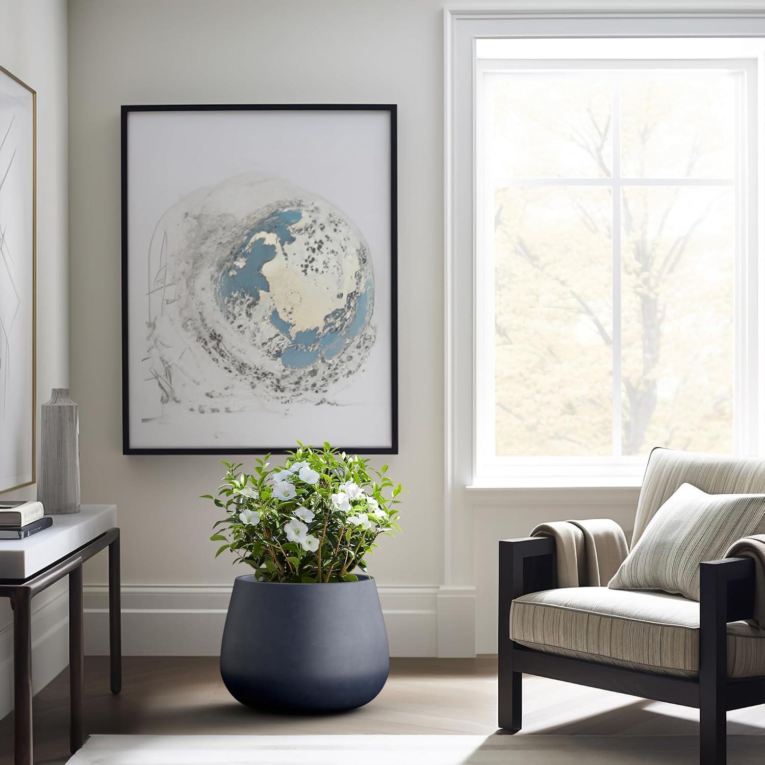 Kante Curva Series Planter, 12.5 Inch Round Concrete Flower Pot with Draiange Hole and Rubber Plug, Suitable for Indoor Plants, Home, Garden, Patio, Charcoal Interior Elegant Concrete Planter – Discover a modern design with smooth, flowing curves and a naturally weathered finish that exudes timeless appeal. Crafted with care, this statement piece seamlessly blends contemporary style with organic texture, featuring subtle pores that enhance its authenticity. It adds a refined touch of character to different surroundings.Handmade Plant Pot – Made from a premium concrete mixture, this pot maximizes durability, strength, and resistance to weather and damage. Its enduring color, combined with UV resistance, ensures that it maintains its vibrant appearance under the outdoor conditions.Large & Versatile – Whether showcasing a plant indoors or positioned on the front steps, porch, or patio, this generously sized planter enhances modern, minimalist, and traditional styles with its unique design. Its versatility makes it well-suited for a variety of settings.Drainage System – Our planter pot features drainage holes for efficient water management, each equipped with a rubber plug for both indoor and outdoor use. Enjoy effortless gardening with minimal upkeep, promoting a healthy environment for your plants.