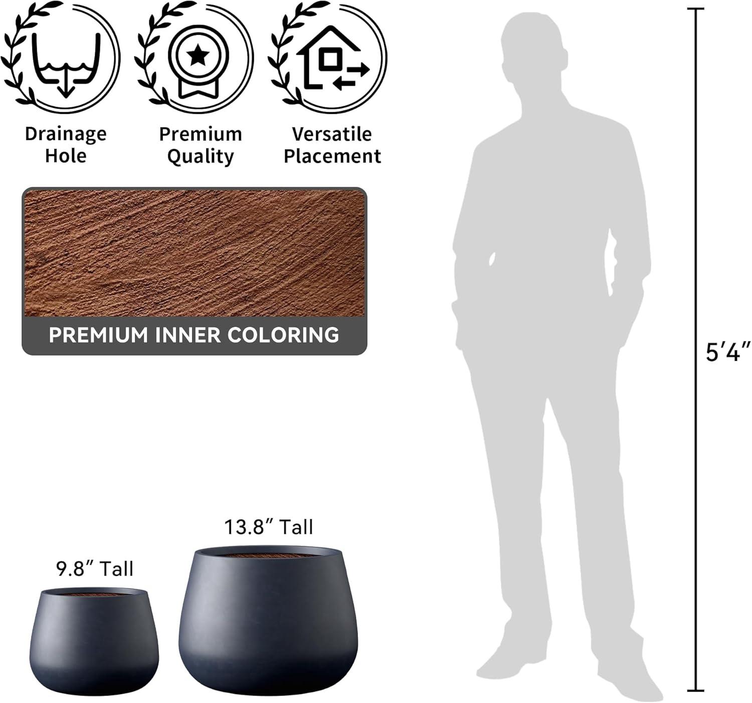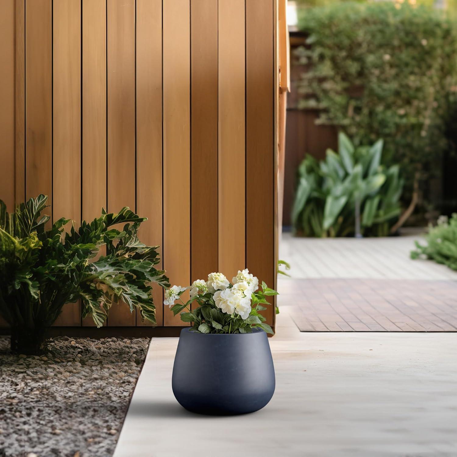 Kante Curva Series Planter, 12.5 Inch Round Concrete Flower Pot with Draiange Hole and Rubber Plug, Suitable for Indoor Plants, Home, Garden, Patio, Charcoal(Black)