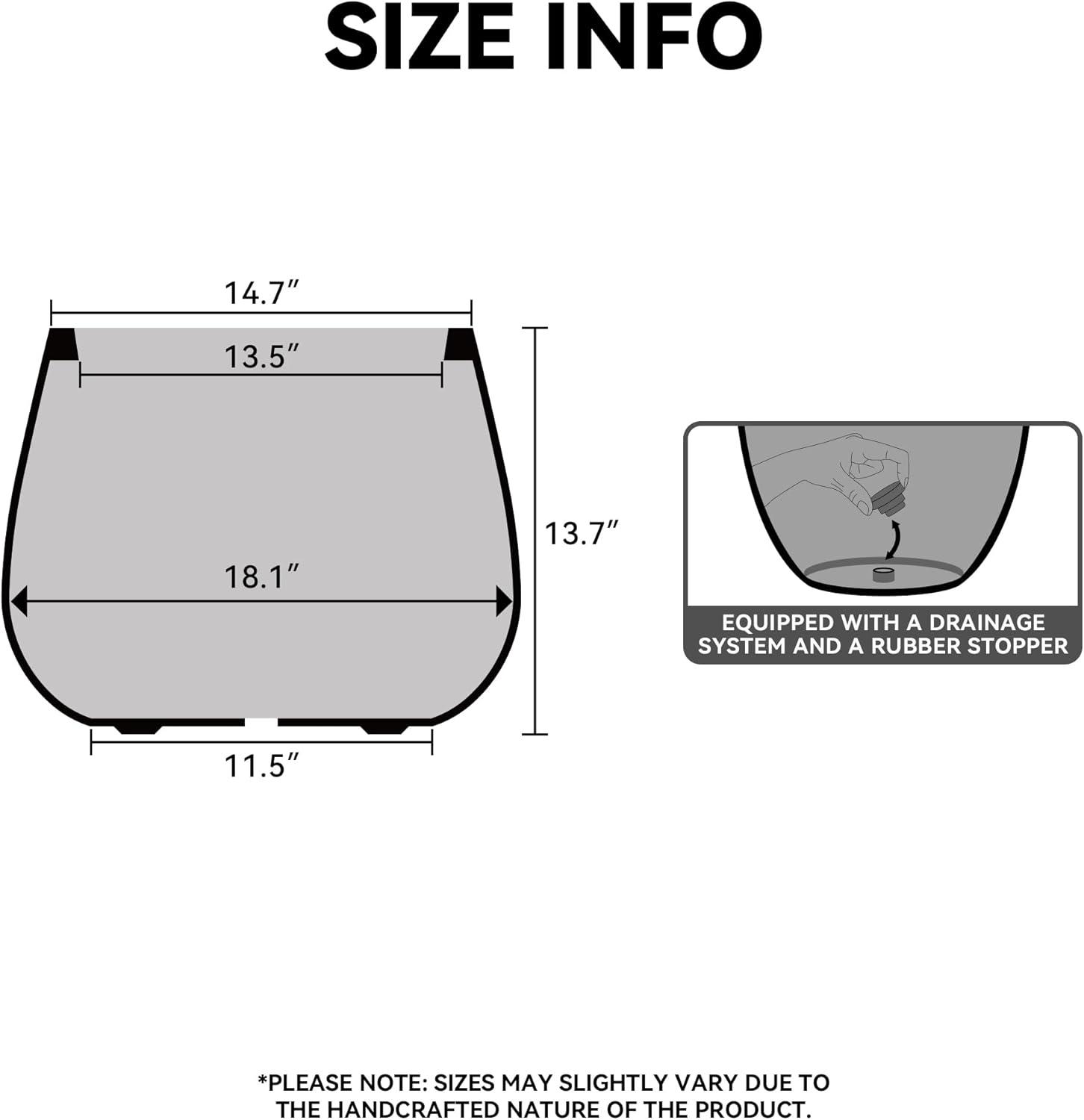 Ample Planting Space – Generously dimensioned to offer ample room for healthy plant development, this planter is ideal for a diverse range of plants, from trees and shrubs to succulents and flowers. Its spacious interior ensures that roots have plenty of space to grow, while its versatility makes it a perfect addition to both gardens and home settings, enhancing any space with lush greenery.