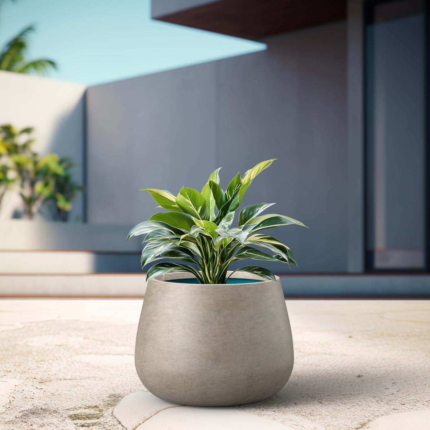 Kante Curva Series Planter, 12.5 Inch Round Concrete Flower Pot with Draiange Hole and Rubber Plug, Suitable for Indoor Plants, Home, Garden, Patio, Charcoal Interior Elegant Concrete Planter – Discover a modern design with smooth, flowing curves and a naturally weathered finish that exudes timeless appeal. Crafted with care, this statement piece seamlessly blends contemporary style with organic texture, featuring subtle pores that enhance its authenticity. It adds a refined touch of character to different surroundings.Handmade Plant Pot – Made from a premium concrete mixture, this pot maximizes durability, strength, and resistance to weather and damage. Its enduring color, combined with UV resistance, ensures that it maintains its vibrant appearance under the outdoor conditions.Large & Versatile – Whether showcasing a plant indoors or positioned on the front steps, porch, or patio, this generously sized planter enhances modern, minimalist, and traditional styles with its unique design. Its versatility makes it well-suited for a variety of settings.Drainage System – Our planter pot features drainage holes for efficient water management, each equipped with a rubber plug for both indoor and outdoor use. Enjoy effortless gardening with minimal upkeep, promoting a healthy environment for your plants.